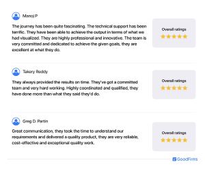 GoodFirms is a B2B research, review, and listing platform helping businesses accelerate their digital journey and to maximize the value of modern technology. The company connects service providers with service seekers through a comprehensive and thoroughly researched fact-based list of the best services and solutions. Recognized as the most reliable source for the B2B market, GoodFirms has world-class experience with partners across the globe.